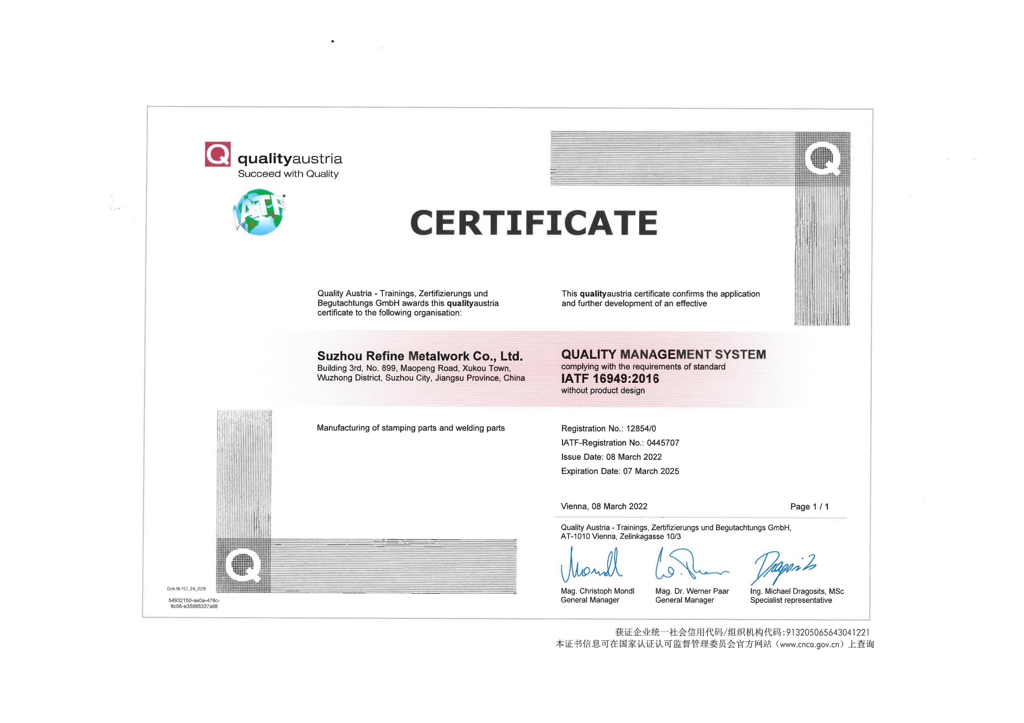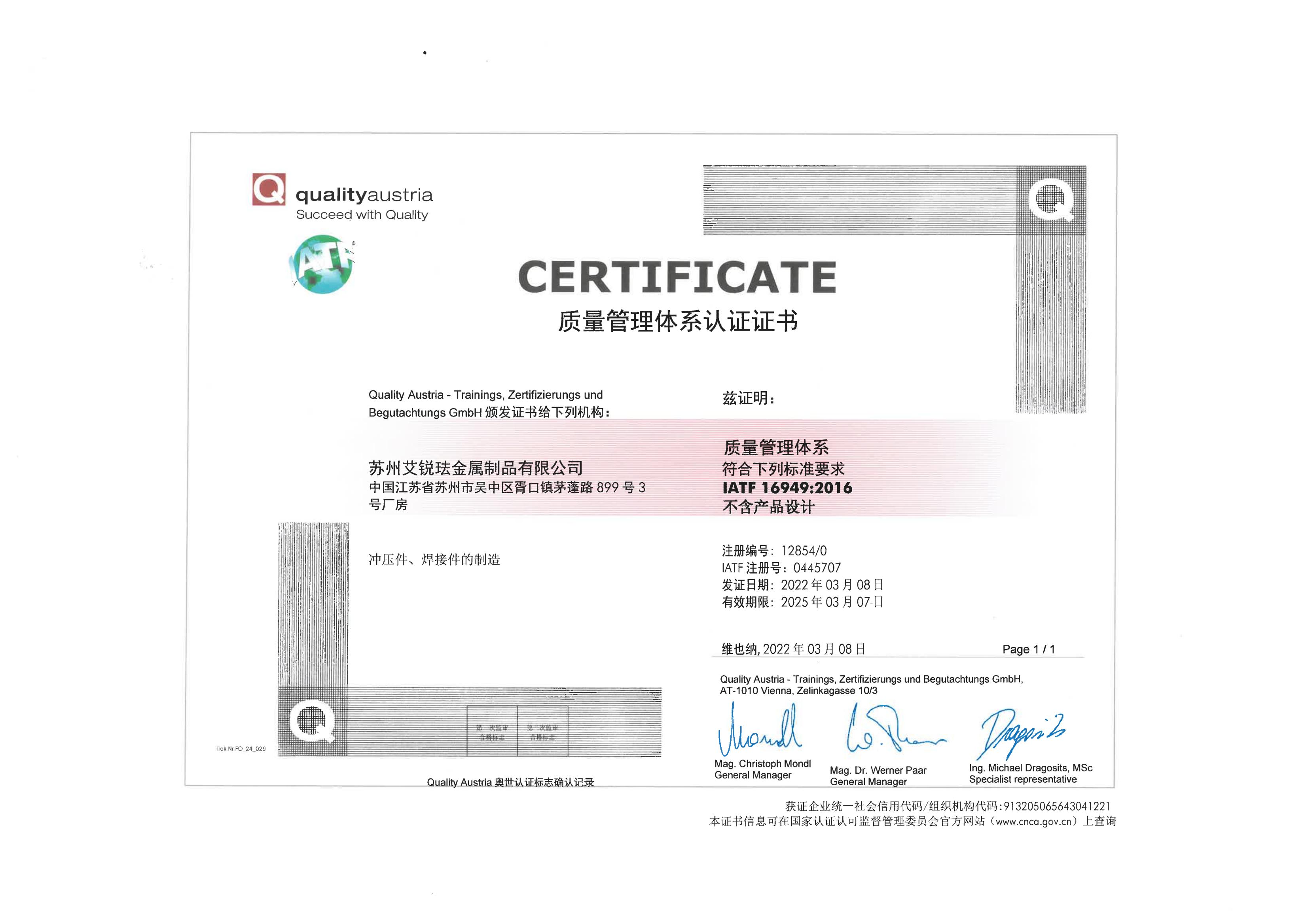 艾銳琺公司以技術為核心,向客戶提供優質的產品、準時的交期、合理的價格、優質的服務從各方面不斷開拓進取,服務于客戶,公司實行ISO9001&IATF16949質量保證體系,致力于打造國內一流的精密鈑金制造公司。