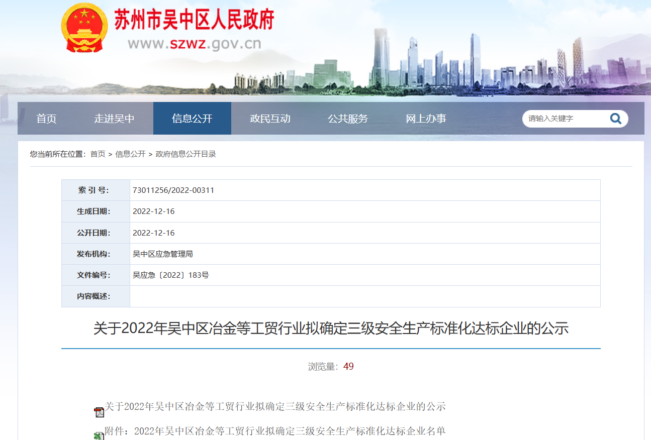 2022年底通過三級安全生產標準化的認定